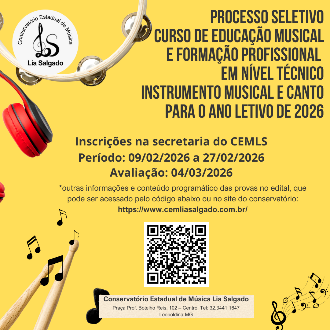 09/02/2026 - 🎶PROCESSO SELETIVO 2026 – Curso Técnico e Educação Musical